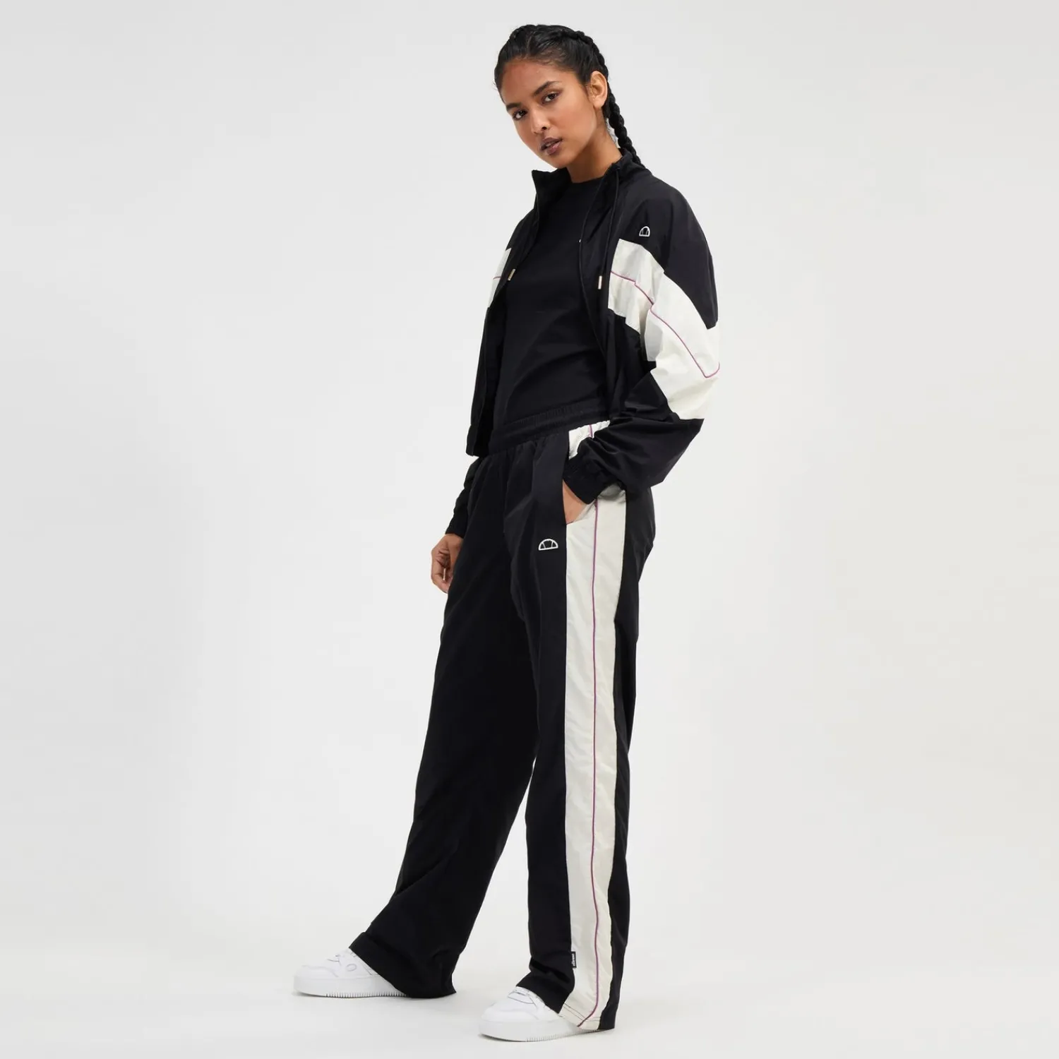 Die Trainingshose Jihae. Diese Trainingshose hat eine bequeme Passform mit einem weiten Bein und verbindet Stil mit Komfort. Mit den seitlichen Eingrifftaschen und unserem gestickten Logo peppt sie deinen Freizeitlook auf.