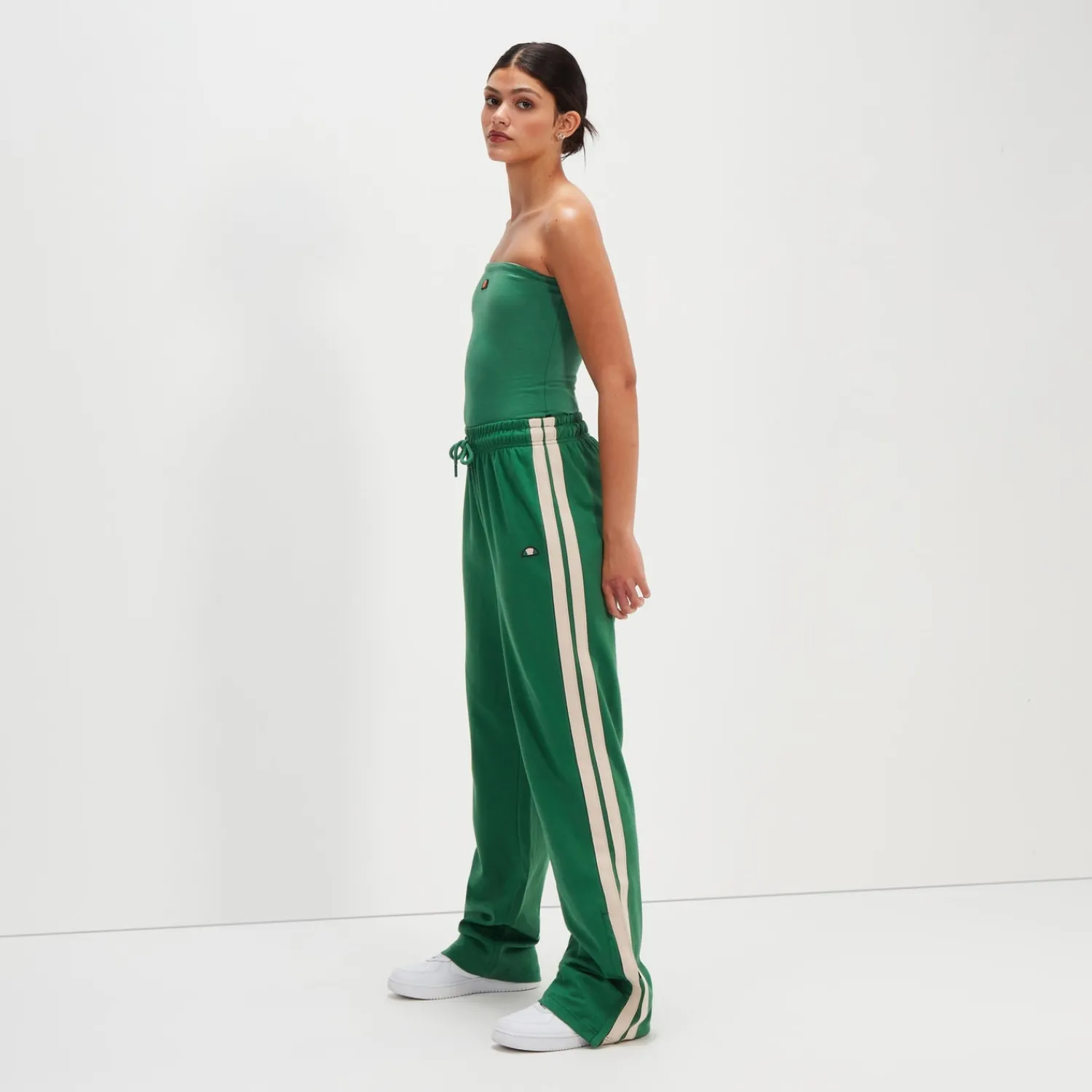 Die Trainingshose Tresha. Die Hose hat eine klassische Passform und die aufgesetzten Streifendetails an den Seiten machen diese Hose zur optimalen Freizeitkleidung. Sie haben ein weiteres Bein, seitliche Eingrifftaschen und unser gesticktes Logo. Werte deine lässige Garderobe auf.