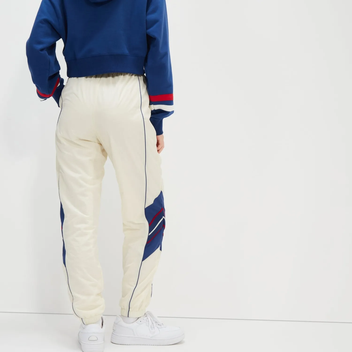 Die Trainingshose Jimenez. Schneiderkunst, inspiriert von unserer reichen Tradition. Diese aus glänzendem Shell-Material gefertigte Trainingshose verfügt über Streifendetails, Bündchen an den Knöcheln und ist mit unserem charakteristischen Logo versehen.